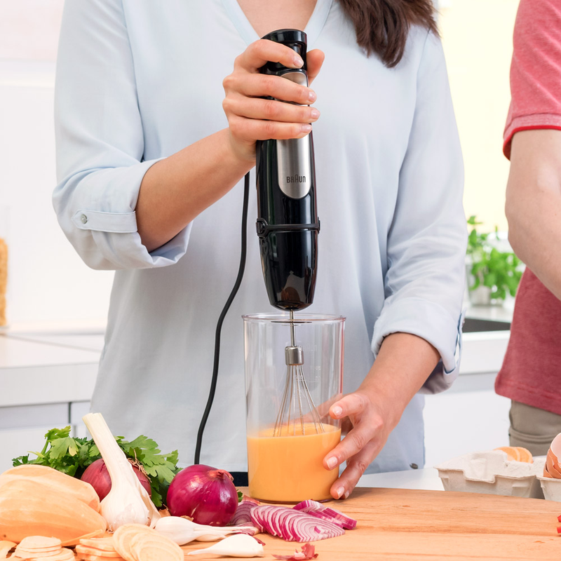 Ручний блендер Braun оснащений системою EasyClick Plus, яка дозволяє легко і швидко замінити насадки в один клік. Виберіть правильну насадку і створіть з нею смачні страви для себе та своїх гостей.