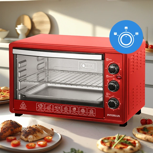 Електрична піч об’ємом 38 л стане зручною помічницею на кухні — у ній легко приготувати і ароматну випічку, і соковите м’ясо на грилі. Завдяки трьом режимам нагріву (верхній, нижній та комбінований) страви пропікаються рівномірно, а регульований термостат від 70 до 230°С дозволяє підібрати точний режим для будь-якого рецепта.