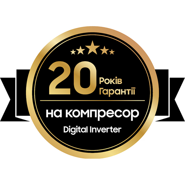 * На основі внутрішнього тестування порівняно зі звичайними компресорами Samsung 53. ** 20-річна гарантія поширюється на компресор (діє у всьому світі, крім Північної Америки).
