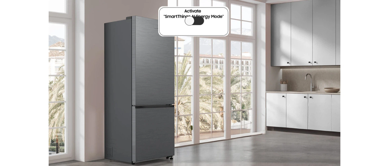 Зменшуйте споживання електроенергії до 15%* за допомогою режиму AI Energy**. Якщо ваш середній рахунок за електроенергію перевищує встановлену вами норму, він допоможе вам заощадити***. Режим AI Energy оптимізує швидкість компресора та цикл розморожування залежно від способу використання та середовища.