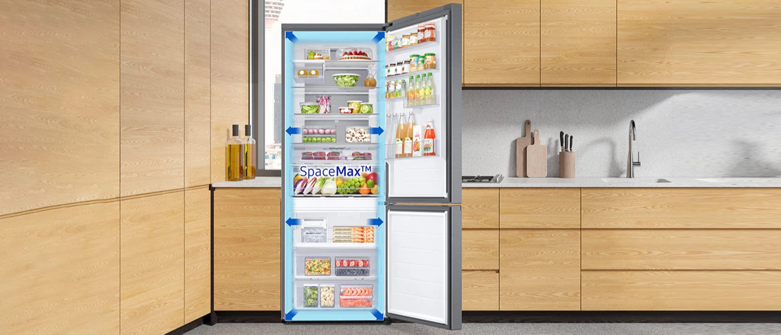 Зберігайте більше продуктів у великому холодильнику об’ємом 538 літрів* із глибиною 711 мм. Унікальна технологія SpaceMax використовує спеціальну високоуретанову ізоляцію, яка дозволяє зробити стінки набагато тоншими не погіршуючи при цьому енергоефективність. Таким чином, всередині стає більше простору.