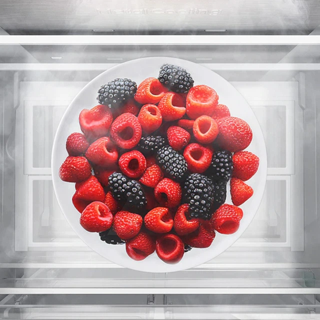 Підтримуйте оптимальну температуру всередині холодильника, щоб продукти залишалися свіжими, навіть якщо ви часто відкриваєте та закриваєте дверцята. Металева охолоджувальна пластина, полиця та повітропровід утримують холод із повітря та допомагають відновити будь-яку втрату тепла.