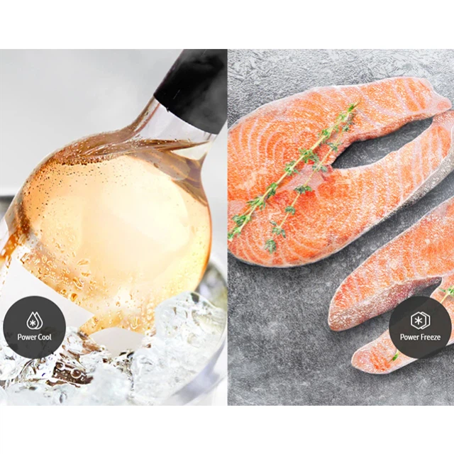 Насолоджуйтеся швидким охолодженням. Одним натисканням кнопки Power Cool інтенсивно вдуває холодне повітря в холодильник, аби швидко охолодити ваші продукти чи улюблені напої. Power Freeze забезпечує швидку подачу холодного повітря в морозильну камеру.