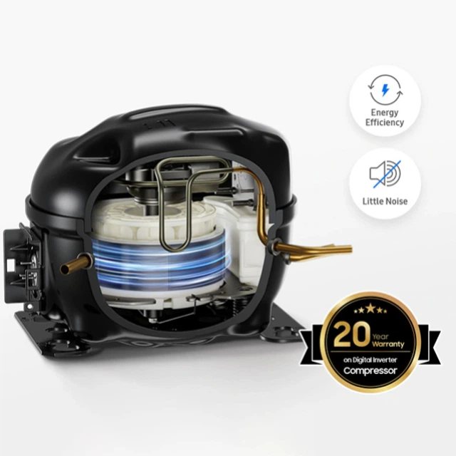 * На основі внутрішнього тестування порівняно зі звичайними компресорами Samsung S3. ** 20-річна гарантія поширюється на компресор (діє у всьому світі, крім Північної Америки).