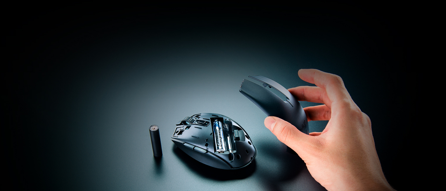 Для роботи потрібна тільки одна батарея AA або AAA*, мишка Razer Orochi V2 оснащена гібридним слотом для батареї, який оптимально розташований для збалансованого розподілу ваги.