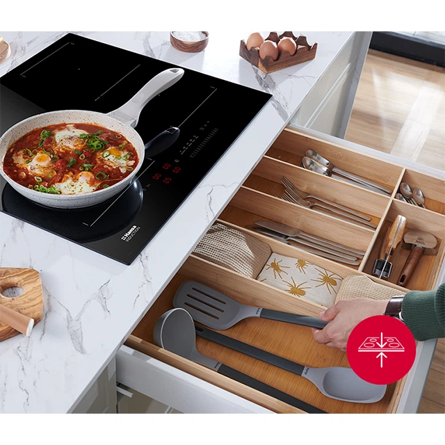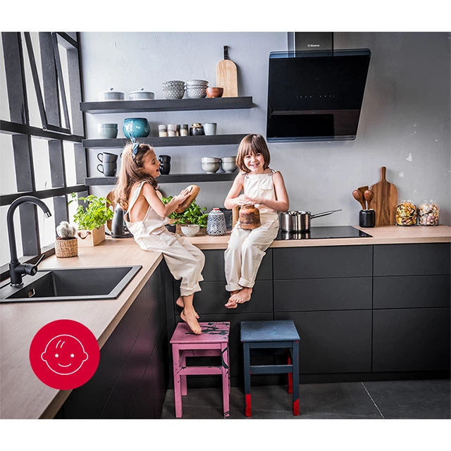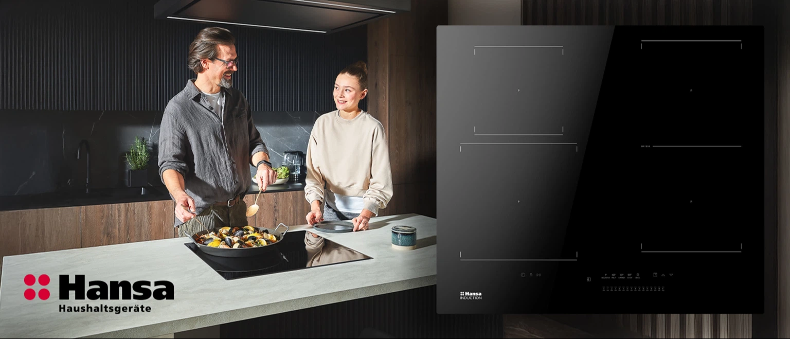 Облаштувати кухню відповідно до останніх тенденцій з тонкою стільницею? Легко, якщо ви виберете універсальну індукційну поверхню Hansa! Ви можете встановити її практично на будь-яку стільницю — навіть на ту, яка має товщину лише 12 мм над висувним ящиком, або на стільницю 28 мм над духовою шафою Hansa. Сучасний дизайн варильної панелі не вимагає використання передньої вентиляції або перегородки, тому ви можете використовувати простір під варильною поверхнею по максимуму. Гнучкість у плануванні кухні, комфорт використання та унікальний дизайн.