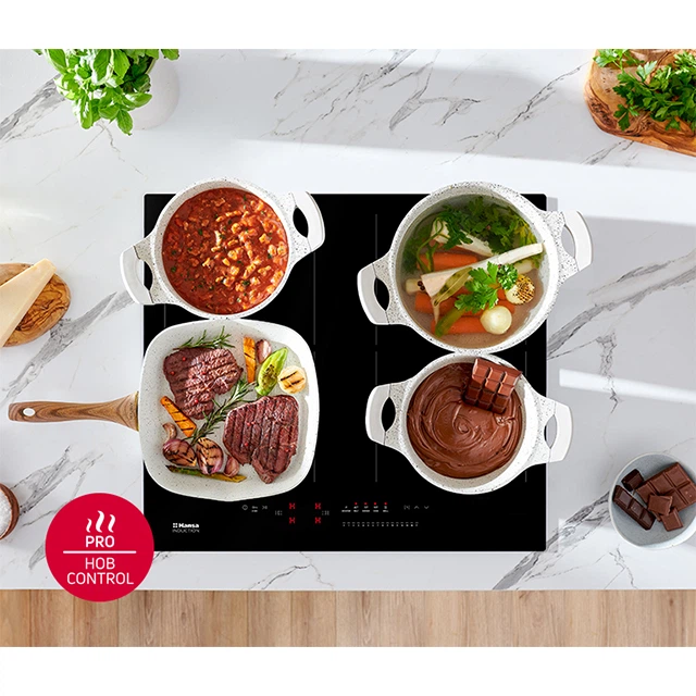 Досить того, щоб їжа перетворилася на кашу або бульйон перекипів і вилився на варильну поверхню. Розумний алгоритм точно підбирає потужність нагріву відповідно до розміру та вмісту каструлі, тому не потрібно турбуватися про те, що їжа може перекипіти. Індукційна варильна поверхня HobControl Pro має функцію повільного готування, що означає повний контроль над процесом та дозволяє споживати менше електроенергії, запобігає втратам енергії через надмірно високі або низькі температури. Просто торкніться одного сенсора — і все готово! Більше не потрібно ні про що турбуватися, економічність та довговічність в одному флаконі!