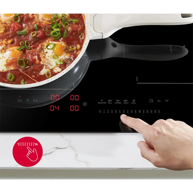 Панель керування ще ніколи не була такою простою в управлінні. Індукційна варильна поверхня Hansa оснащена чітким, інтуїтивно зрозумілим 14-ступінчастим цифровим регулятором для точного налаштування потужності нагріву без зайвих роздумів. Якщо нам потрібно приготувати їжу швидше, повзунок містить перемикач PowerBooster. Ширший діапазон потужності нагріву та точні налаштування варильної поверхні означають кращі результати та вищу зручність приготування їжі.