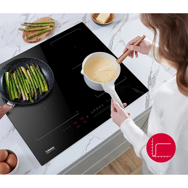 Плавне та рівномірне нагрівання без циклічного вмикання та вимикання зони нагріву? Це можливо! Індукційна варильна поверхня Hansa оснащена системою подвійного резонансу, яка забезпечує стабільну вихідну потужність нагріву — легко готуйте або смажте з потужністю нагріву, яка постійно зростає, а не змінюється. Чудово вийдуть навіть більш вимогливі страви, наприклад, голландський соус (соус Голландез). Відтепер ви можете сміливо братися за кулінарні виклики.