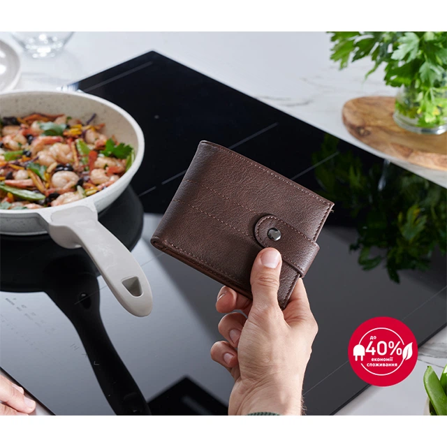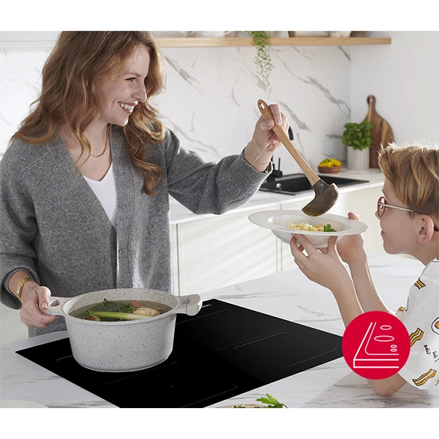 Виберіть конфорку, поставте каструлю на варильну поверхню, і варильна поверхня сама підлаштується під розмір і форму каструлі. Поле нагріває лише дно каструлі, що дозволяє уникнути зайвих витрат енергії. Користуватися індукційною варильною поверхнею економно і, що особливо важливо, безпечно.