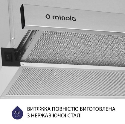 Кухонна витяжка Minola HTL 5614 I 1000 LED обладнана двома алюмінієвими жировими фільтрами, що складаються з трьох шарів. Вони забезпечують надійний захист двигуна та інших деталей пристрою від потрапляння жиру та випарів.