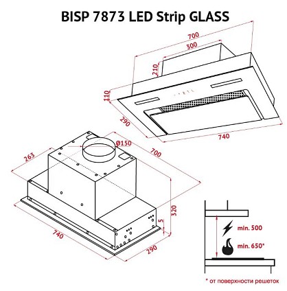 Висока потужність - 260 Вт, завдяки продуктивній мотору. Даний мотор забезпечує продуктивність роботи витяжки 1200 м3 / год. Легкість у використанні за рахунок сенсорного управління. Великим плюсом для зручності експлуатації є пульт дистанційного керування. Дві LED смуги по 2,1 Вт забезпечать додаткову можливість для висвітлення робочої поверхні при недостатній освітленості кухні.