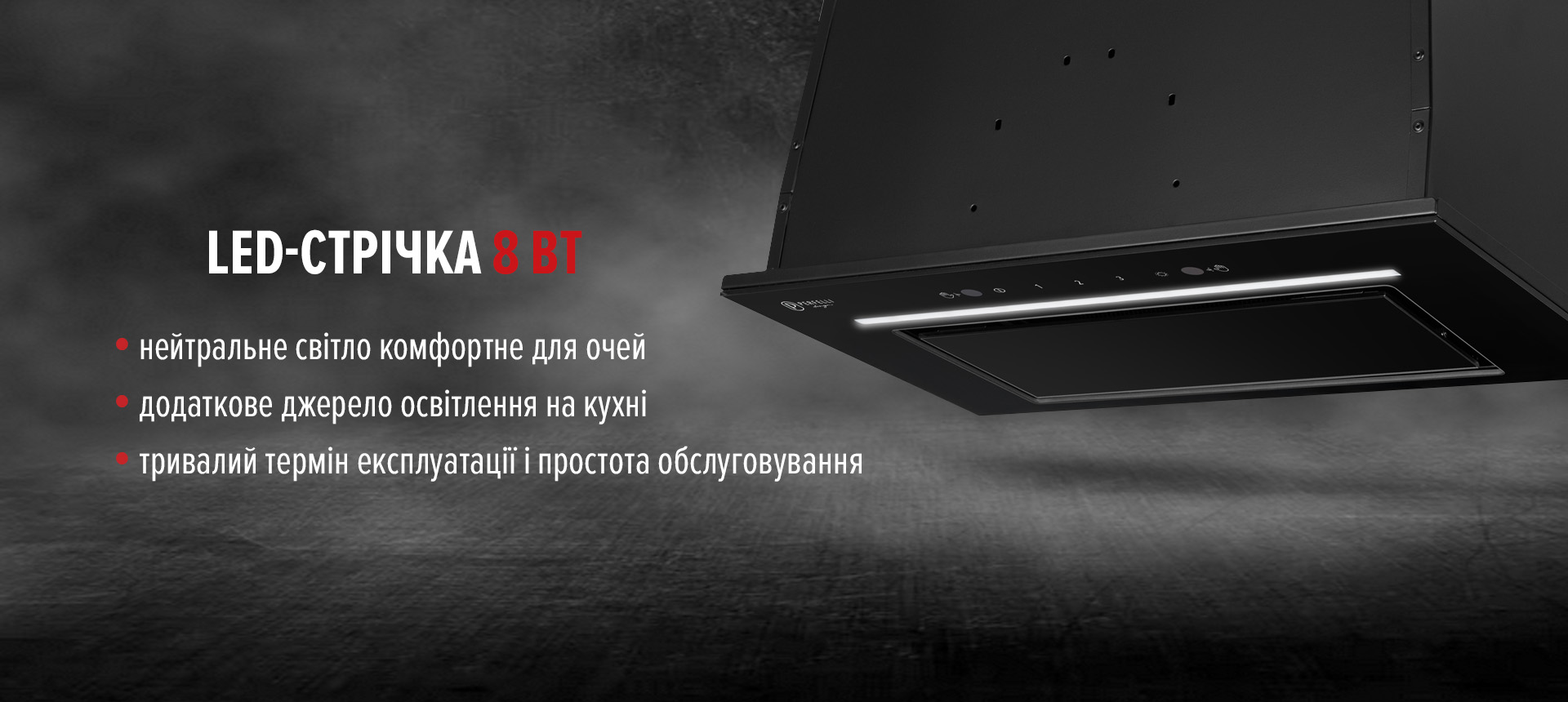 - LED-стрічка 8 Вт створює м’яке, але яскраве освітлення варильної поверхні.