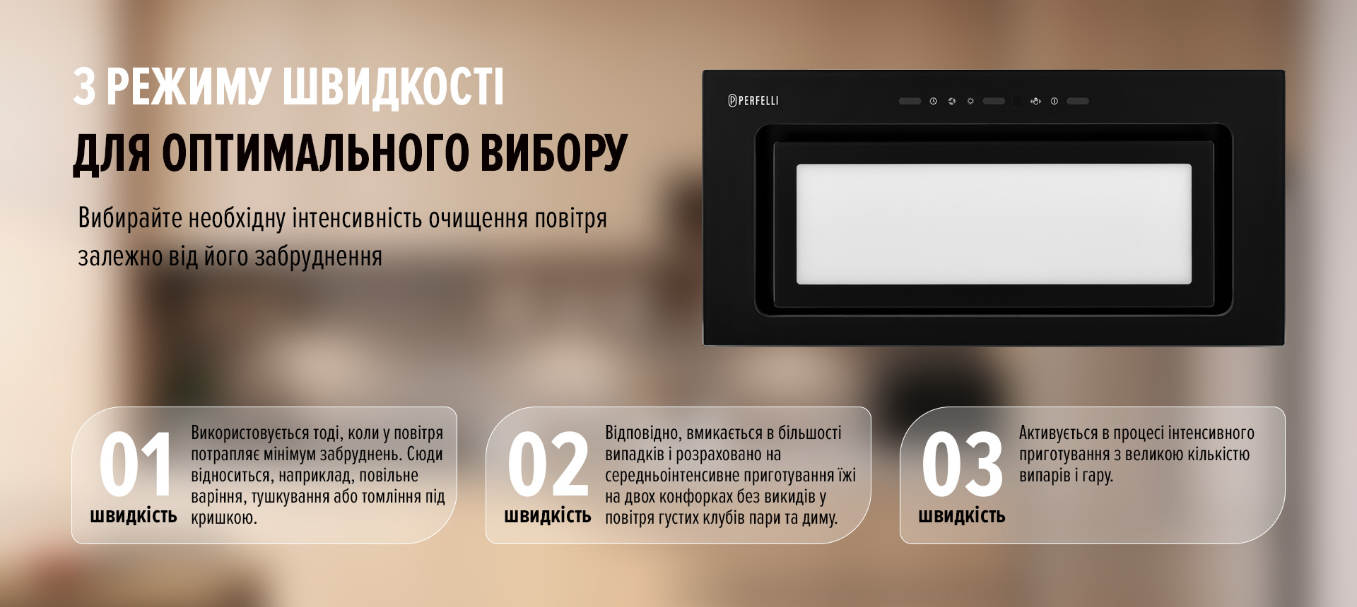 Завдяки такому гнучкому настроюванню ви зможете підтримувати свіжість повітря на кухні та насолоджуватися процесом приготування їжі.