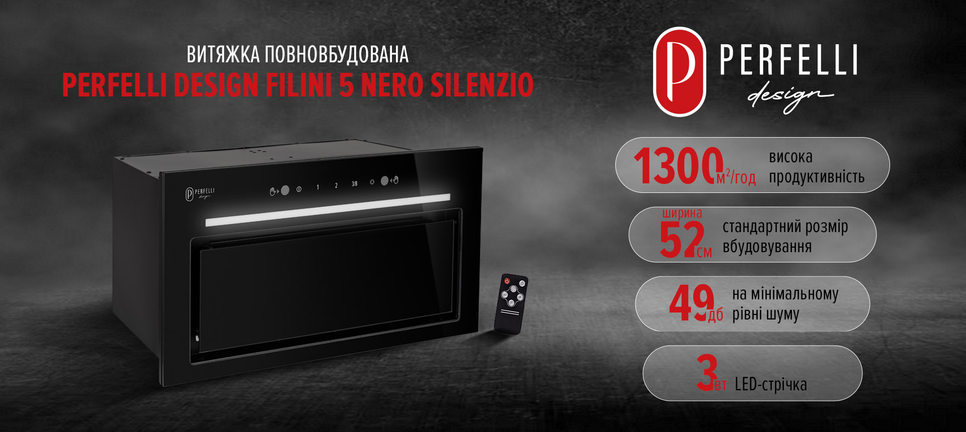 - Продуктивність витяжки: 1300 м³/год