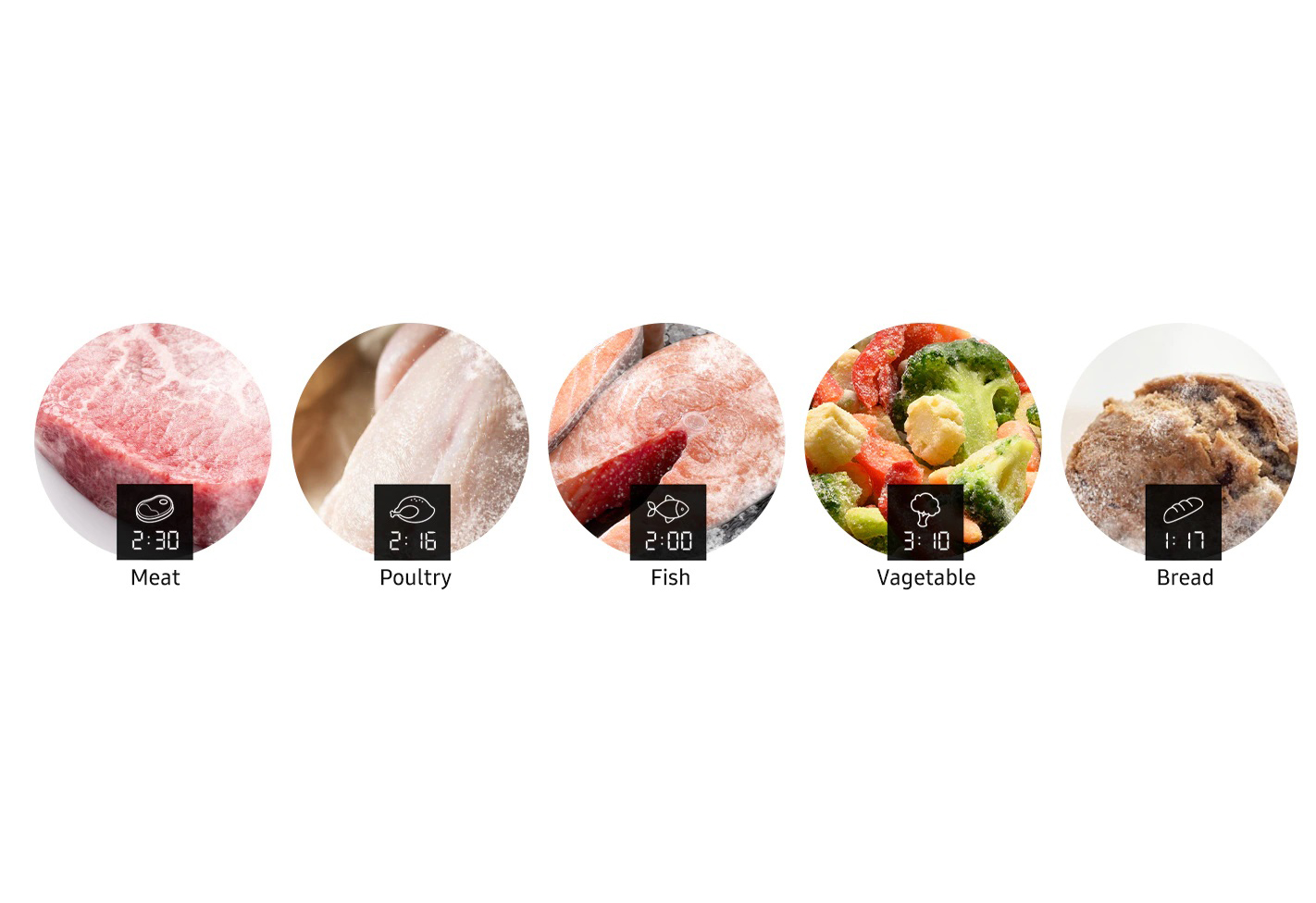 Швидко розморожуйте заморожену їжу. У меню є 5 варіантів продуктів, які часто використовуються: м'ясо, птиця, риба, овочі та хліб. Просто виберіть тип та вагу їжі, і вона обчислить оптимальний час розморожування. Завдяки оптимальній програмі потрібно менше часу на підготовку інгредієнтів, зберігаючи поживні речовини.