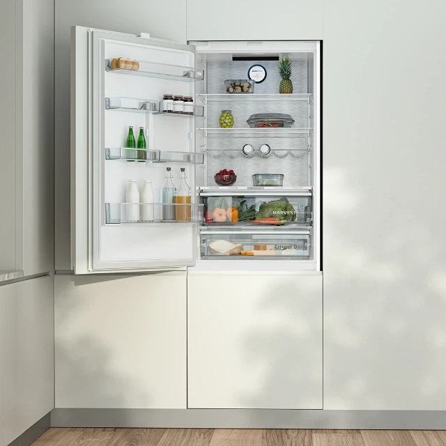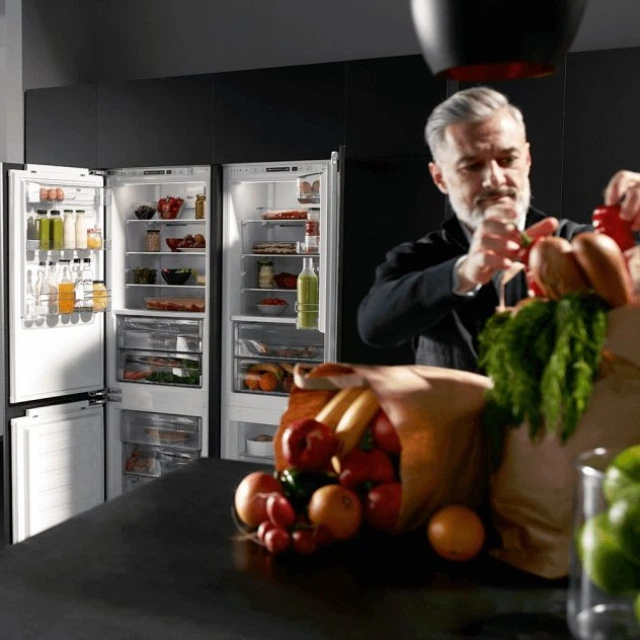 Іноді планування кухні вимагає, щоб двері холодильника відкривалися в один бік, а не в інший. Петлі перенавішуваних дверей можна розташувати як з лівого, так і з правого боку холодильника, даючи змогу вибрати, в який бік будуть відкриватися його двері. Крім того, ви можете збільшити холодильну систему, встановивши два прилади поруч один з одним і навісивши двері одного з них з іншого боку.