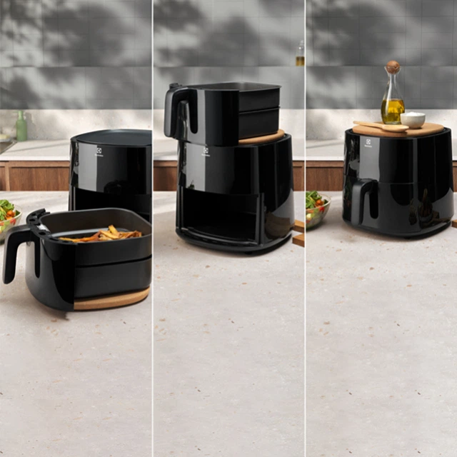 Універсальна підставка MultiCoaster встановлюється зверху на аерофритюрницю як компактна підставка для кошика або місце для розміщення інструментів під час готування. Її також можна зняти, щоб використовувати на столі під час сервірування страв щойно з аерофритюрниці.