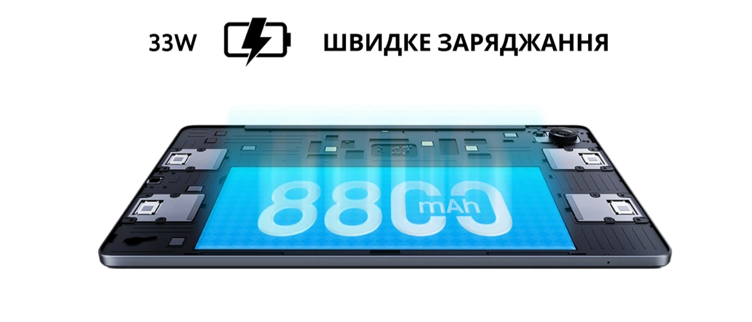 Залишайтеся на зв'язку довше завдяки акумулятору на 8800 мА*год, який ідеально підходить для до 20 годин щоденного використання під час навчання або розваг. Завдяки швидкій зарядці на 33 Вт ви зможете швидко поповнити заряд і насолоджуватися безтурботними й приємними моментами.