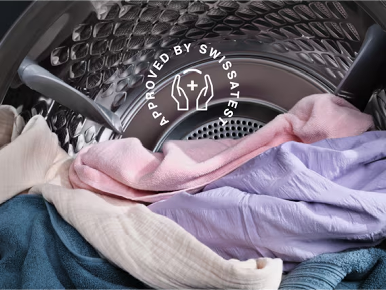 Програма «Гігієна», сертифікована Swissatest, поєднує прання та відпарювання для видалення понад 99.99% бактерій і вірусів* при температурі вище 60°C. Вона також сприяє зменшенню кількості пилку та алергенів, що забезпечує гігієнічну чистоту одягу після кожного прання.