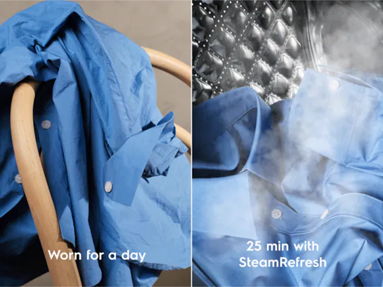 *На основі внутрішнього тестування споживання води, в якому порівнювалася програма SteamRefresh з повним пранням при 30°C Делікатне прання з завантаженням 1 кг.