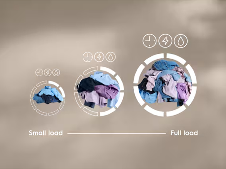 *За результатами внутрішніх випробувань витрати часу, води та енергії для 1 кг завантаження порівняно з максимальним завантаженням у циклі Cotton 30°C за допомогою функції SensiCare+, яка регулює програму, виходячи з обсягу завантаження.