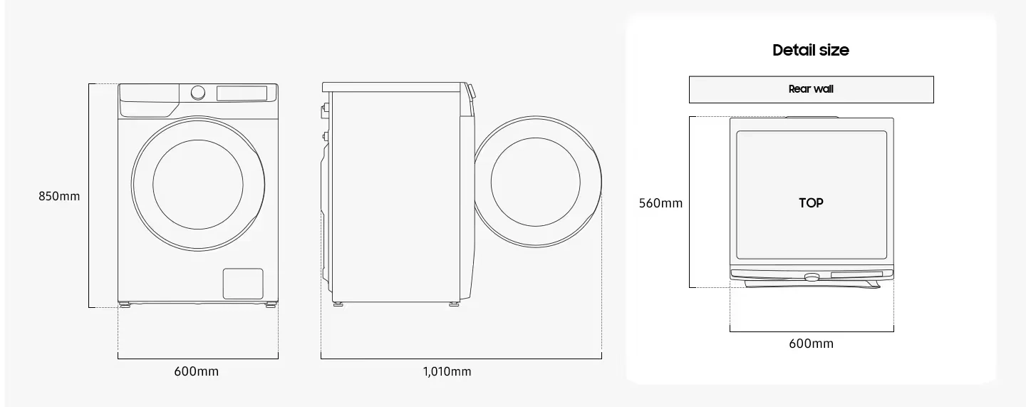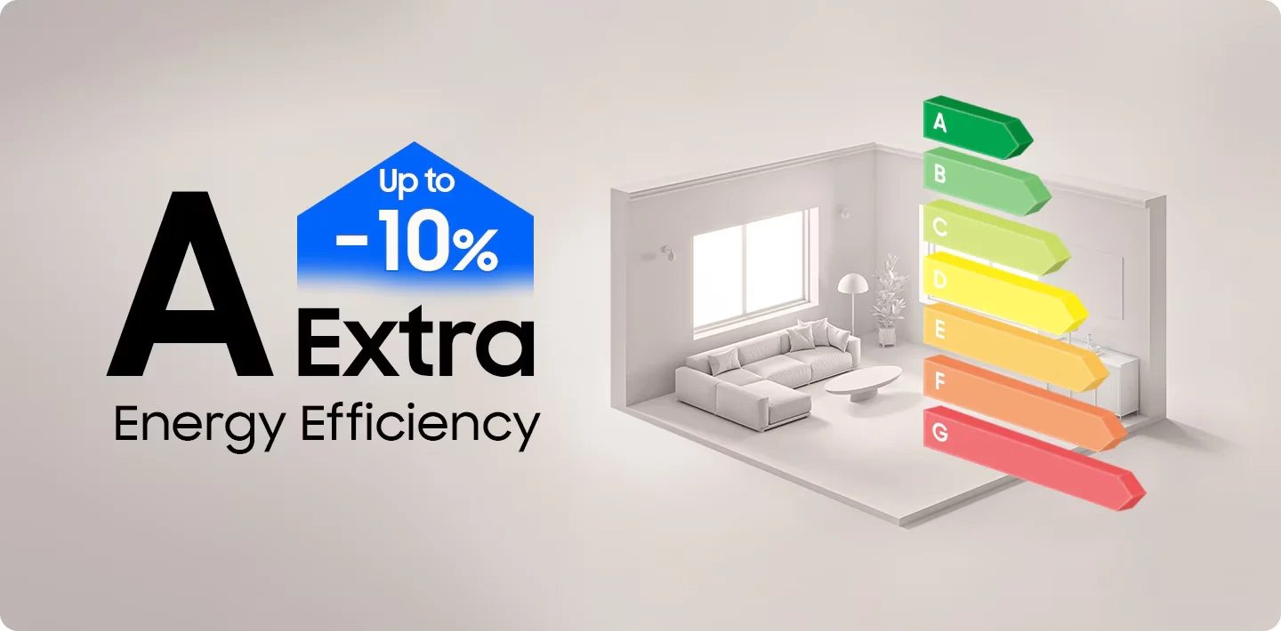 *Внутрішні тести Samsung показали: модель на 9 кг споживає всього 44 кВт⋅год на 100 циклів за програмою Eco 40–60, що на 10% нижче порогового значення для класу A (49 кВт⋅год). Фактичні значення можуть варіюватися в залежності від умов експлуатації.
