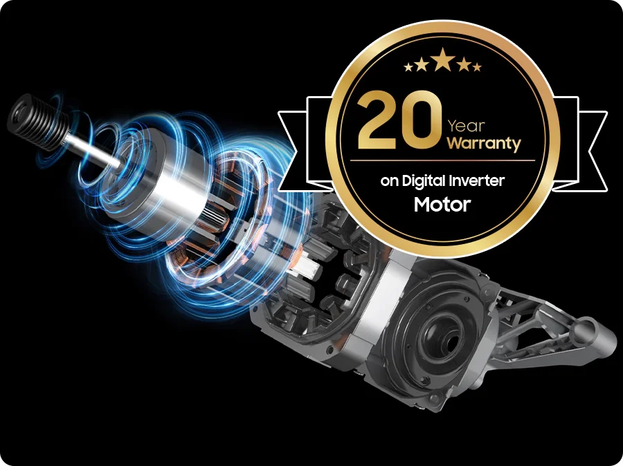 Насолоджуйтесь високою продуктивністю при зниженні рівня шуму та споживання енергії. Завдяки застосуванню потужних магнітів інверторний двигун працює тихіше та ефективніше традиційних моделей. Він відрізняється надійністю, має збільшений термін служби та підкріплений 20-річною гарантією.