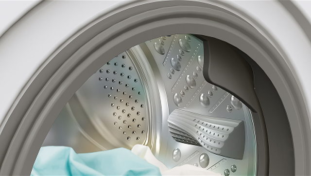 Забезпечує надзвичайно делікатне поводження з усіма типами тканин. Спеціальний хвилястий візерунок м’яко розпушує волокна, захищаючи тканини від пошкоджень. Одяг після такого прання менш зім’ятий і його легше прасувати.