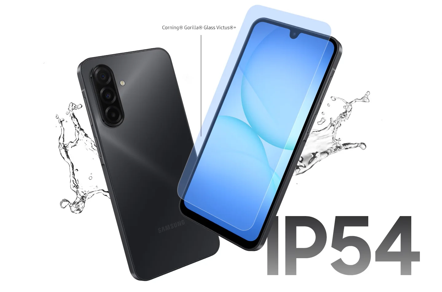 Захист за стандартом IP54 і скло Corning® Gorilla® Glass Victus® допомагають смартфону протистояти волозі та подряпинам, зберігаючи його зовнішній вигляд.