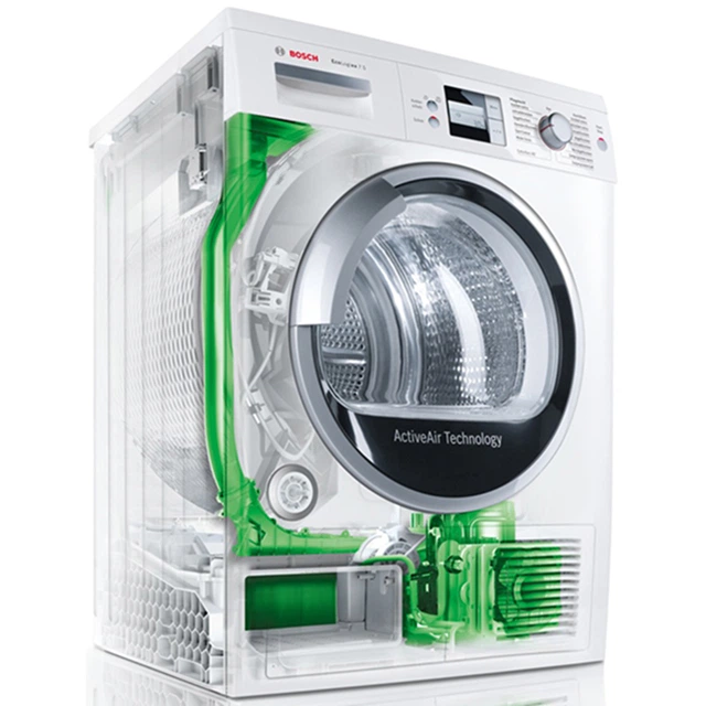 Система SensitiveDrying піклується про тканину завдяки м'якому теплому повітрю, що подається з усіх боків. Крім того, барабан має вигнуті лопаті, тому білизна ніколи не лежить плиском і не зминається. Результат: сухі та непошкоджені речі без зайвих складок.