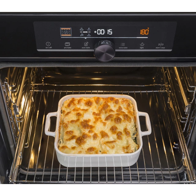 Температура в духових шафах OptiBake досягає 200 °C усього за 5 хвилин, а це на 30 % швидше, ніж при звичайному розігріванні. Завдяки цьому наші моделі духовок — одні з найшвидших на ринку. Дуже зручно, коли ви готуєте страви, що потребують попереднього розігрівання. Щойно пристрій розігріється, відобразиться світловий індикатор і пролунає звуковий сигнал.