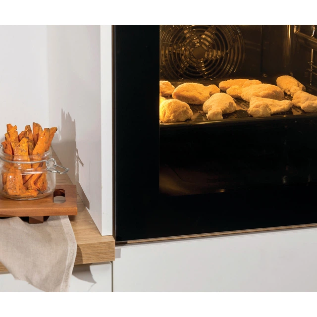 Тепер ви зможете насолоджуватися улюбленими смаженими стравами без зайвих калорій. Інтенсивний метод випікання AirFry у духовці Гореньє з використанням гарячого повітря не потребує додавання жиру для досягнення хрусткої золотистої скоринки. Результати приготування будуть ще кращими, якщо випікати в спеціальному деку з отворами (залежить від моделі), яке з усіх боків ідеально огортає страву. Підходить для смаження малих шматків м’яса, риби, овочів і заморожених напівфабрикатів, як-от картопля фрі та курячі нагетси.