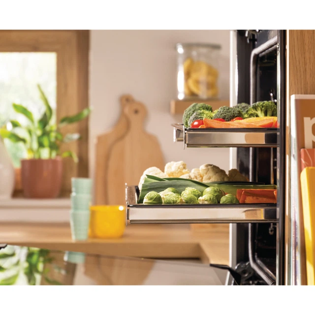 Телескопічні направляючі рухаються плавно та забезпечують чудовий огляд процесу випікання, а також простоту й безпечність користування деками. Залежно від моделі, духові шафи Gorenje OptiBake оснащено телескопічними напрямними, що висуваються на ¾ своєї довжини, на одному або двох рівнях. Також доступні додаткові гнучкі однорівневі телескопічні напрямні, які можна легко закріпити на потрібному рівні дротяних напрямних.