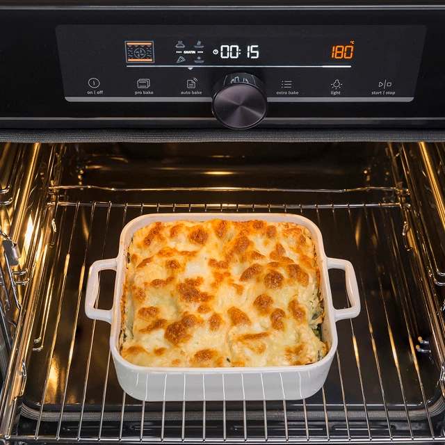 Функція ГРАТЕН допомагає досягти ідеальної золотисто-коричневої скоринки на лазаньї, м’ясі та запіканках, зокрема картопляній.