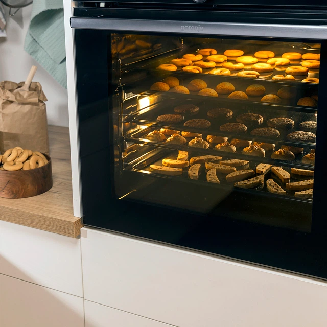 Вбудовувані духові шафи Gorenje OptiBake мають повністю автоматичні програми приготування страв з понад 22 рецептами — ідеально для початківців. Програми AutoBake пройшли ретельне тестування експертами Gorenje та довели свою надійність, демонструючи чудові результати навіть без розігрівання.