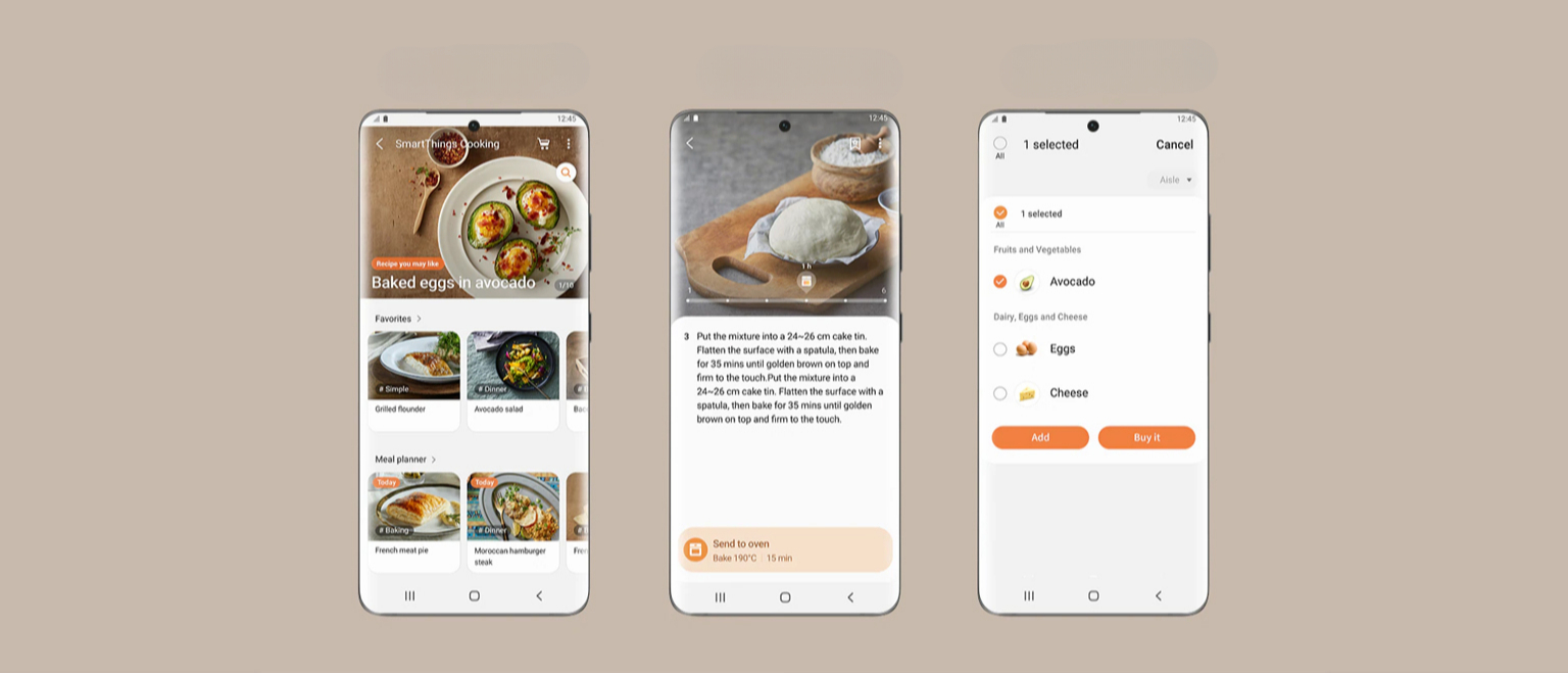 Створювати кулінарні шедеври стає ще приємніше. SmartThings Cooking* економить час і полегшує процес приготування їжі. Розуміючи ваші потреби, додаток рекомендує індивідуальні рецепти** та створює тижневий план харчування. Він також пропонує можливість керувати процесом приготування їжі та дозволяє без зусиль купувати продукти***.