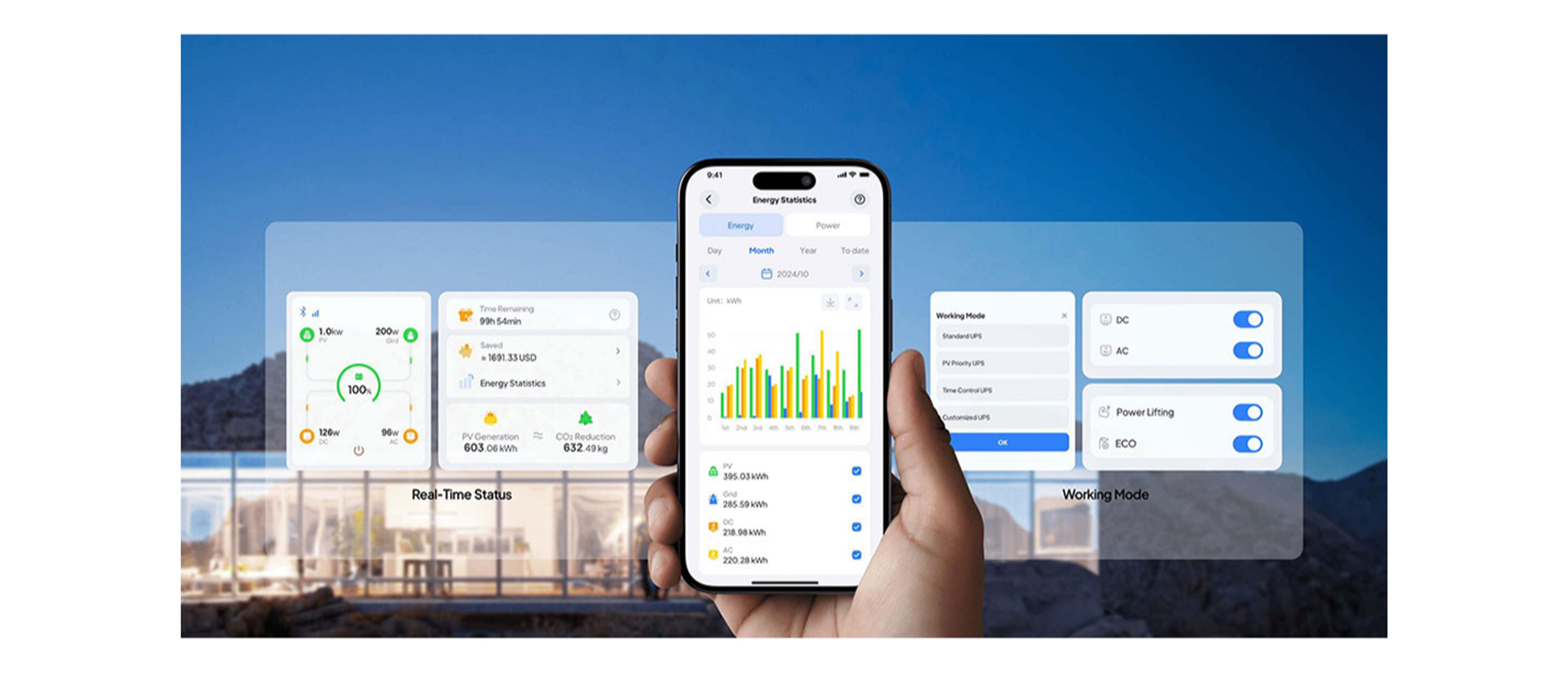 Легко керуйте своєю енергією за допомогою передової системи AI-BMS Premium 200 V2. Керуйте зарядкою та розрядкою через Bluetooth або Wi-Fi через додаток, а також відстежуйте економію енергії за допомогою нового модуля доходів, щоб вимірювати ваші інвестиції в резервне живлення.