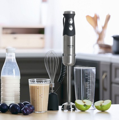 Блендер може працювати на 13 швидкостях, що плавно перемикаються. Перемикач міститься на ручці приладу, що дуже зручно. У комплект входить віночок для збивання і пластикова мірна склянка об'ємом 600 мл. Ці властивості в поєднанні з компактним дизайном роблять блендер незамінним помічником на вашій кухні.