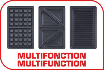Snack time, багатофункціональний пристрій з металевою вставкою для приготування трикутних тостів, паніні та вафель, це унікальне рішення, яке поєднує в собі сендвічницю, вафельницю та паніні-гриль, для завжди ідеальних солодких і солоних закусок. Крім того, його металевий вигляд надає продукту преміальний дизайн.