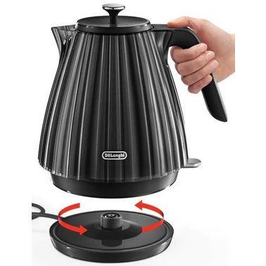 Чайник De'Longhi Ballerina KBD 2001.BK встановлений на знімній підставці, що обертається на 360°, яка забезпечує надійну стійкість на кухонному столі.
