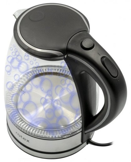 Електрочайник Rotex RKT82-G дозволить закип'ятити воду за лічені секунди! Цей потужний електрочайник (2200 Вт) ємністю 1.7 л має прихований нагрівальний елемент з нержавіючої сталі, а також вбудований знімний фільтр, який легко знімається і миється. Ви завжди отримаєте кришталево чисту воду без частинок накипу. Корпус виготовлений з високоміцного скла, яке є екологічно чистим матеріалом. Завдяки градуюванні, яке нанесена на поверхні чайника, Ви зможете закип'ятити необхідний обсяг води.