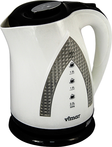 Чайник ТМ "Vimar" має автоматичний вимикач на основі біметалевої пластини, прозоре віконце для контролю рівня води та контактну підставку, що дає змогу легко та швидко від'єднати чайник від живильного проводу. Також чайник обладнаний фільтрами для води. Це незамінний побутовий прилад у кожному будинку й офісі.