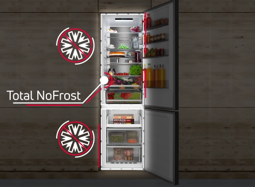 Вам подобається розморожувати холодильник? Якщо ні, то вам більше ніколи не доведеться! Технологія Total NoFrost постійно контролює рівень вологості як у холодильнику, так і в морозильній камері, а це означає відсутність інею всередині. А відсутність інею означає відсутність потреби в розморожуванні! Але NoFrost також означає кращу гігієну та довше збереження свіжості ваших продуктів, оскільки стабільна температура в усьому холодильнику мінімізує ризик росту бактерій. Вам не потрібно нічого робити, і ви економите гроші!