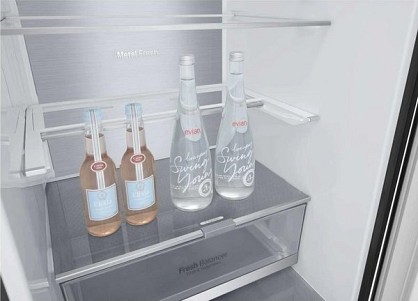 * На підставі результатів UL тесту, відповідно до внутрішнього методу LG, вимірювання коливань середньої пікової температури у відділенні для свіжих продуктів між моделями холодильників LG з нижньою морозильною камерою GBB72NSDFN(±0.5°C), French Door GF-L570PL(±0.5°C), Side by Side J811NS35(±0.5°C), з моделями з верхньою морозильною камерою B607S(±0.5°C) та B606S(±1.0°C).