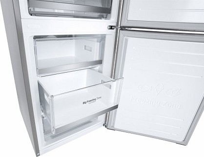 *На підставі результатів UL тесту, відповідно до внутрішнього методу LG, який порівнює час, необхідний для зниження температури верхнього дверного кошика з 24.8°C до 8°C між моделлю LG без DoorCooling+ (GBB60NSZHE) та моделлю з технологією DoorCooling+ (GBB72NSDFN).