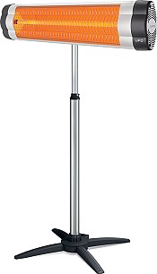 Обігрівач Edler EDHT-6643 виконаний в характерному для такого типу приладів дизайні. Горизонтальний інфрачервоний випромінювач встановлений на потужну підставку. Її телескопічна конструкція дозволить вам більш точно відрегулювати напрямок обігріву, щоб домогтися високого ККД і мінімальних втрат. Підставка з металу, доповнена стійкою хрестовиною біля основи. Всі рухливі елементи відрізняються посиленою конструкцією, щоб витримати довгий період експлуатації. При цьому максимальна висота нагрівача досягає позначки 180 сантиметрів.