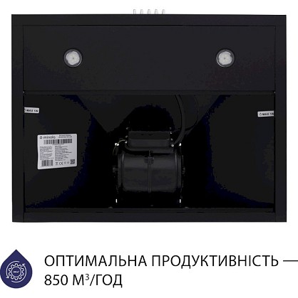 Потужність витяжки – 850 м3/год. Вона ефективно освіжить повітря, усунувши випари, дим і зайві запахи.