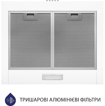 Модель має надійні жирові алюмінієві фільтри, які складаються з трьох шарів. Вони перешкоджають потраплянню жиру та випарів всередину витяжки. Завдяки цьому мотор захищений, а тому прослужить вам значно довше