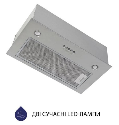 Повновбудовувана кухонна витяжка Minola HBI 5327 GR 800 LED обладнана двома круглими LED-лампами потужністю 1.5 Вт кожна. Світлодіодні лампи забезпечують комфортне додаткове освітлення вашої кухонної поверхні,залишаючисьнайбільш економічним джерелом світла.